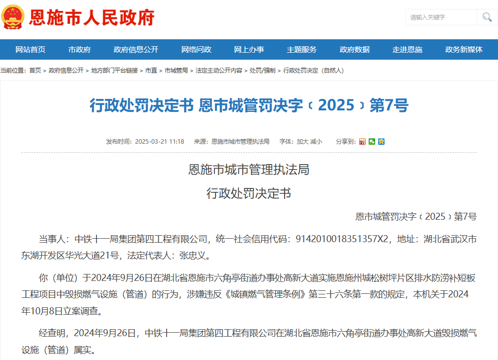 据了解,该处管线属于恩施民生天然气公司管辖。事故发生后,当地紧急启动应急预案,调动应急抢险力量,组织应急抢修。